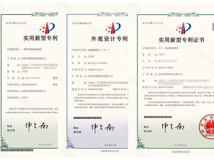 KEMOVE 四爪二合一拔轴拔键器为原创研发产品,已获得国家专利认证,受《中华人民共和国专利法》严格保护。区别于市场上偷工减料的仿冒品,正品在夹持稳定性、拔取无损性、结构耐用性等方面均有显著优势,能有效保护键盘与键帽,避免劣质工具带来的使用隐患。