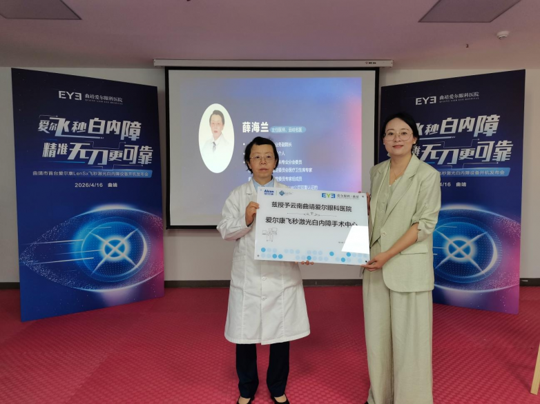 2026年4月16日上午,曲靖爱尔眼科医院三楼会议室内气氛热烈,曲靖首台爱尔康LenSx飞秒激光白内障设备开机发布暨“爱尔康飞秒激光白内障手术中心”授牌仪式圆满举行。本次活动标志着曲靖地区白内障诊疗正式迈入精准、无刀、智能的新时代,同时也为曲靖爱尔眼科建院十周年献上了一份厚重的“光明贺礼”。