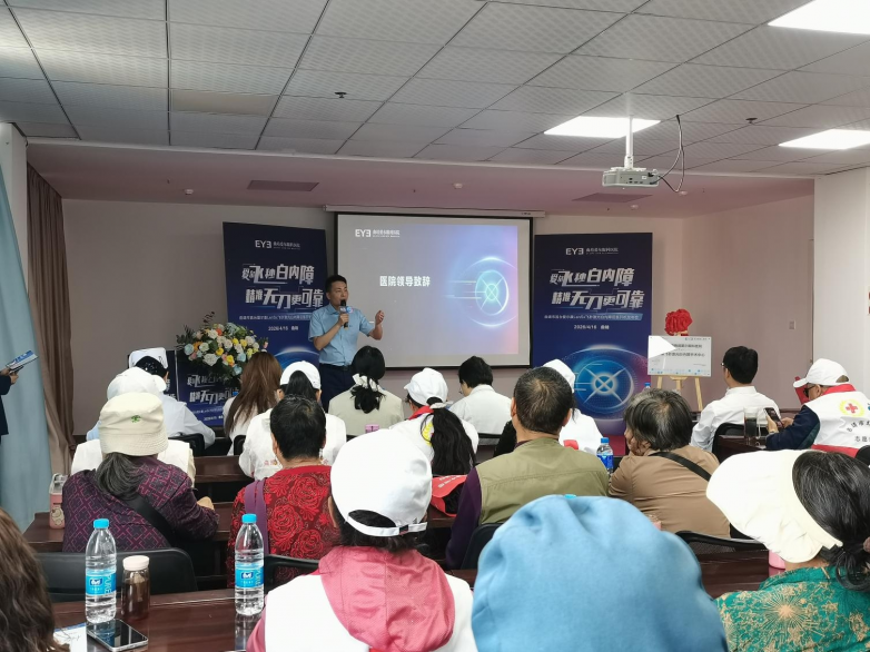 昆明爱尔眼科医院副院长杨建宇教授率先登台,带来《飞秒激光白内障技术原理与优势》专题科普。杨教授结合大量临床案例与对比数据,深入浅出地讲解了LenSx飞秒激光如何通过计算机精准定位、智能切割,替代传统手术刀完成角膜切口、环形撕囊、预劈核等关键步骤。他强调:“飞秒激光将白内障手术的精准度提升到微米级,创伤更小、恢复更快,尤其适合对视觉质量要求高的患者。”通俗易懂的讲解让台下患者频频点头。