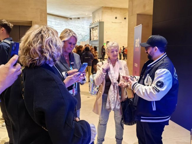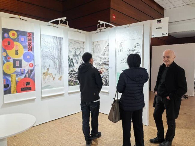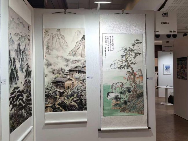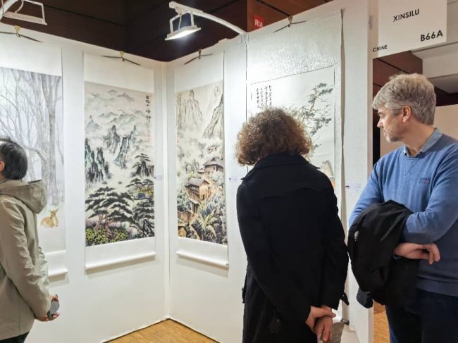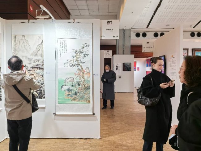 在展会现场,谢世富先生的作品吸引了众多国际观众与藏家驻足观赏。一位外国观众在作品前驻足良久,用镜头记录下这份来自东方的艺术之美,也印证了艺术无国界的真谛 —— 不同文化背景下的人们,总能在优秀的艺术作品中找到情感的共鸣。此次参展,不仅是谢世富先生个人艺术创作的一次国际展示,更是中国传统书画艺术走向世界、与国际艺术对话的生动实践,为中法文化交流写下了温暖而有力的一笔。