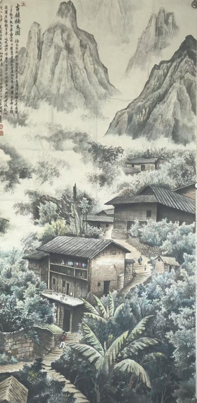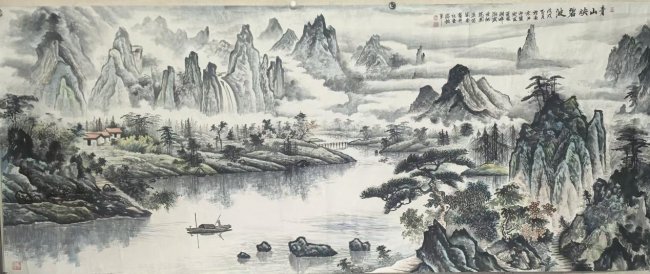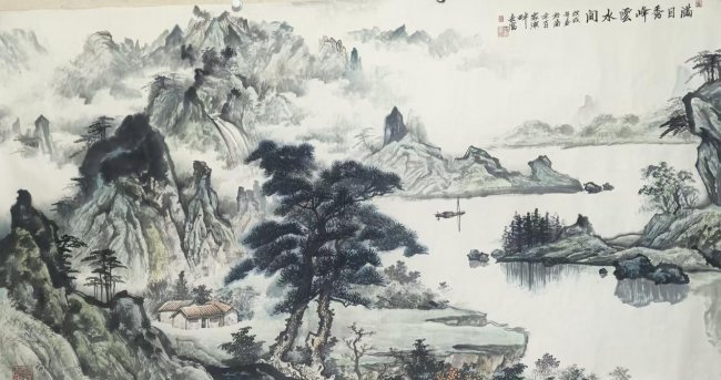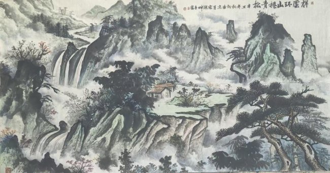 其作品特色:古为今用,在长期的绘画积累和沉淀中,传承了古韵之风,又以清丽疏朗的构图和淡雅设色见长,营造悠然意境。擅长通过云雾渲染表现空间层次,画面常点缀林木屋宇,体现江南婉约风格。形成了自己独有的风格。