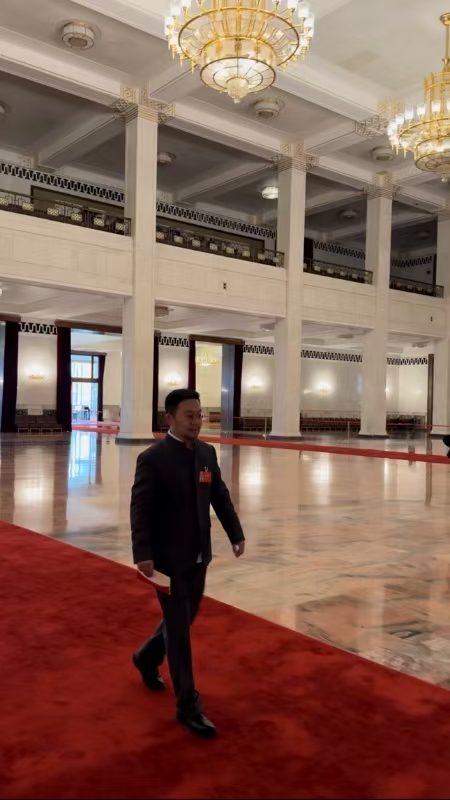 高山持请柬经迎宾红毯入场