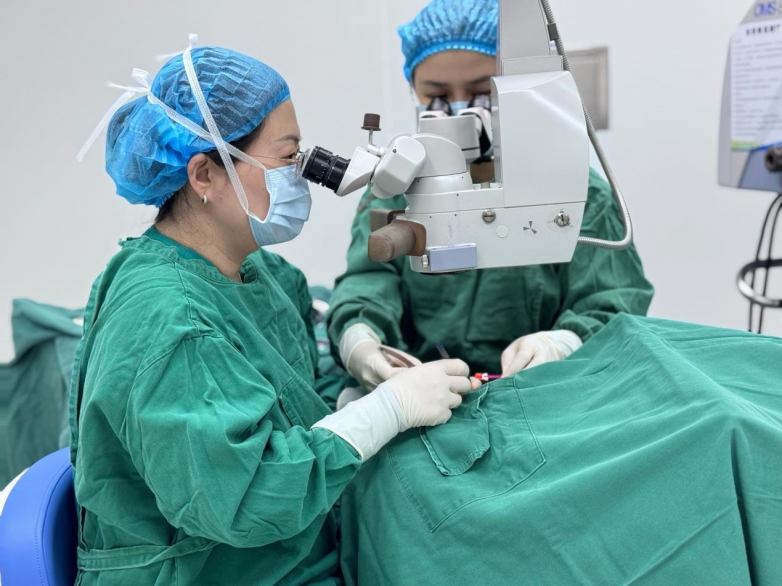 在完善各项术前检查、全面评估手术风险并排除手术禁忌后,杨秋艳主任结合小赵的斜视类型、度数及眼部整体情况,为其制定了个性化斜视矫正手术方案,顺利为小赵实施了双眼外直肌后徙6mm、左眼内直肌缩短5mm的手术操作,整个手术过程规范有序、平稳顺利,精准达到了术前预期效果。