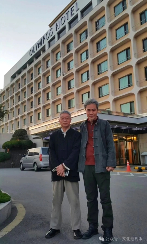 图为朴灿(韩国)右,与画家杨云祥(中国)左