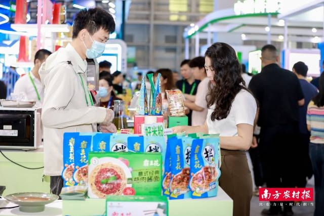 走进本次农博会河源展馆,主视觉“万绿河源”与万绿湖碧波相映,河源米粉、紫金蝉茶、龙川山茶油、河源丝苗米、东源板栗、生态畜禽等拳头产品生香吸睛,传递着“好山好水出好品”的品质内涵。