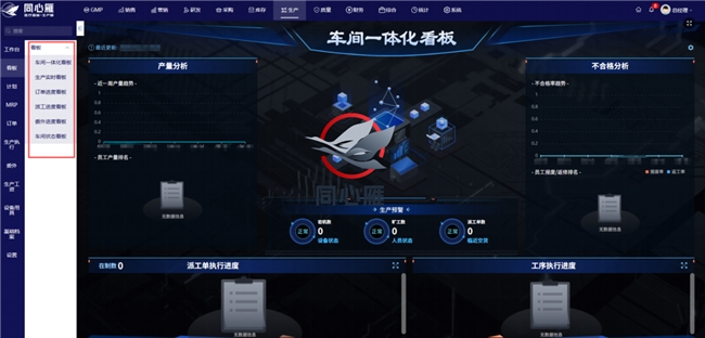 同心雁S-ERP立足医疗器械行业特性,摒弃通用ERP的同质化设计,以“合规为基、一体化为核、数据为链、可视为要”为理念,构建覆盖生产全流程的一体化看板监控体系。其生产看板并非简单的数据展示工具,而是深度融合生产计划、工艺管理、物料管控、设备监控、质量追溯、异常预警等功能的数智化管控中枢,通过实时采集、动态分析、直观呈现生产全维度数据,让生产过程“一目了然、全程可控”。