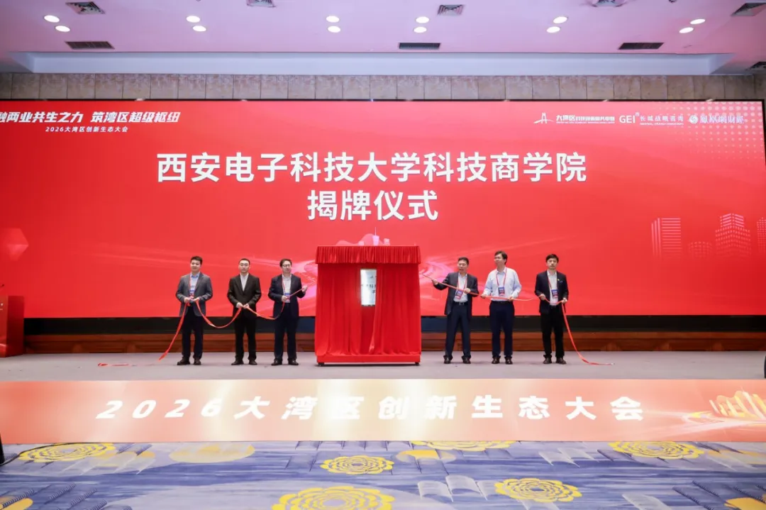人才是超级枢纽的核心资产。大会现场,中国技术市场协会会长杨显武,广东省科学技术厅副厅长杨军,广州市科技局副局长雷进,西安电子科技大学广州研究院执行院长王从思,西安电子科技大学经济与管理学院执行院长柴建,大湾区科技创新服务中心董事长、湾创技术经理人事务所管理合伙人、广州市粤港澳大湾区技术经理人协会会长秦海鸥共同为西安电子科技大学科技商学院揭牌。