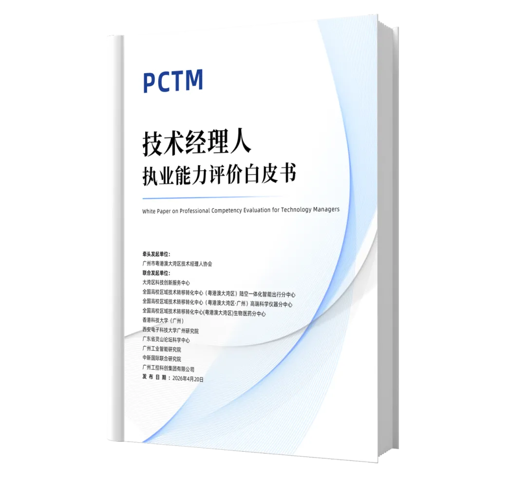 《技术经理人执业能力评价白皮书》由广州市粤港澳大湾区技术经理人协会牵头发起,联合大湾区科技创新服务中心、全国高校区域技术转移转化中心(粤港澳大湾区)陆空一体化智能出行分中心、全国高校区域技术转移转化中心(粤港澳大湾区·广州)高端科学仪器分中心、全国高校区域技术转移转化中心(粤港澳大湾区)生物医药分中心、香港科技大学(广州)、西安电子科技大学广州研究院、广东省灵山论坛科学中心、广州工业智能研究院、中新国际联合研究院、广州工控科创集团有限公司共同发起。