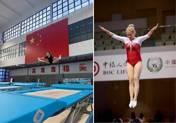 (左)中国香港队于复活节期间在中国进行密集训练,积极备战今届亚洲弹网锦标赛。