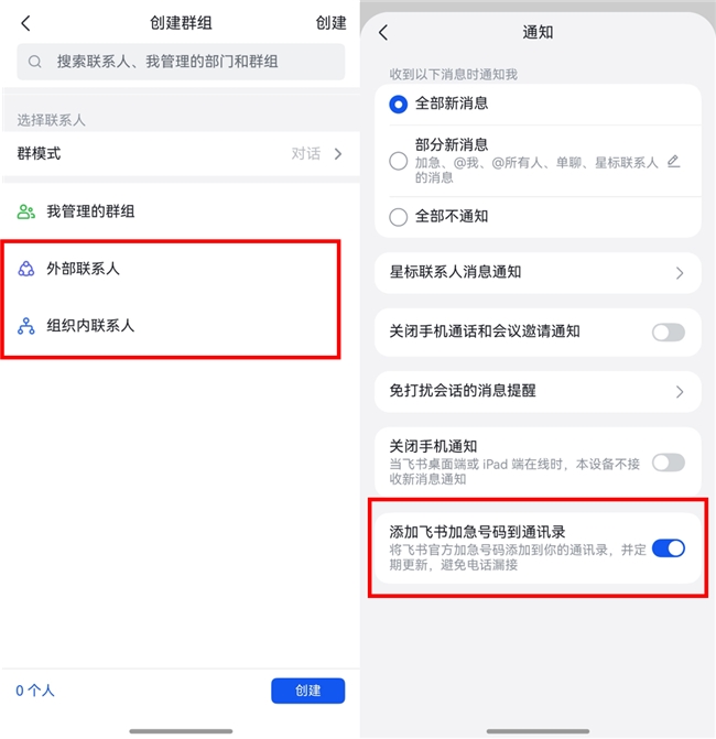 跨部门建群,以前要搜名字、加好友、拉进群,折腾五分钟。现在,点“+”直接勾选通讯录或组织架构里的人,一键拉群。加急电话自动存进手机通讯录,来电显示“飞书加急电话”。重要电话,再也不会漏。