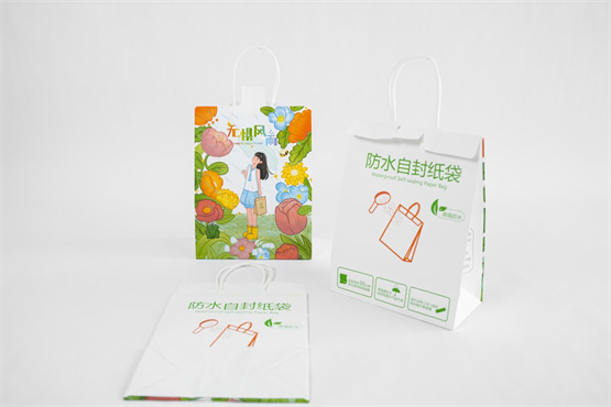 这款新品采用了独特的“破坏性开启”自封设计,彻底告别了订书钉,消费者只需一撕即可开启,既避免了刮手划伤风险,又通过密封后无法复原的特性,拆袋即留痕的方式有效保护了消费者的隐私,特别是针对医药等敏感产品,哑光材质配合自封结构,为个人健康隐私筑牢了防线。在功能性上,纸袋表面采用了特殊防水工艺,并可选增加内部防水工艺,经专业测试,即使在持续淋雨的情况下,依然能保持高强度,不破损、不渗水,彻底解决了雨天配送破袋的痛点。