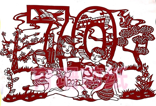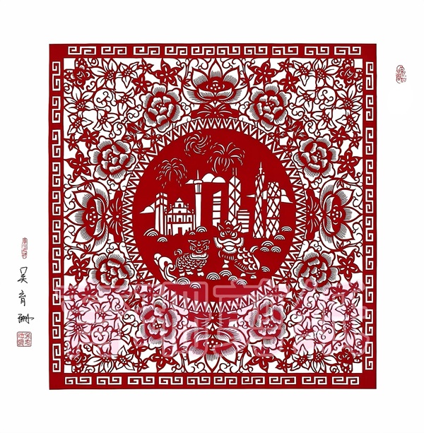 吴育珊剪纸作品《繁花逐梦大湾区》