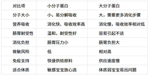 这种差异让小分子蛋白能为敏宝提供更高效、更温和的蛋白质来源,并且不会刺激敏宝的肠道,引发湿疹、瘙痒、鼻炎、打喷嚏、流清涕、咳嗽等各类过敏反应。