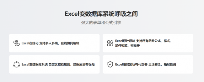 • 完全接近Excel的操作体验:魔方网表在全球首创了在网页上实现Excel操作体验的能力,支持各种格式、公式、条件格式,业务人员可以像使用Excel一样轻松上手。 • 一键转换Excel:现有的Excel表格可以直接导入平台,一键转换为具备数据库能力的在线应用,实现从“单机Excel”到“协同数据库”的无缝升级。 • 可配置的拖拽式开发:业务人员通过拖拽操作就可以快速搭建表单、定义字段之间的关联、设置业务流程,开发效率是传统编码方式的10倍以上。 • 强大的工作流引擎:平台内置了BPM流程引擎,支持工作流和审批流,业务人员可以自主设计流程,无需IT部门介入。