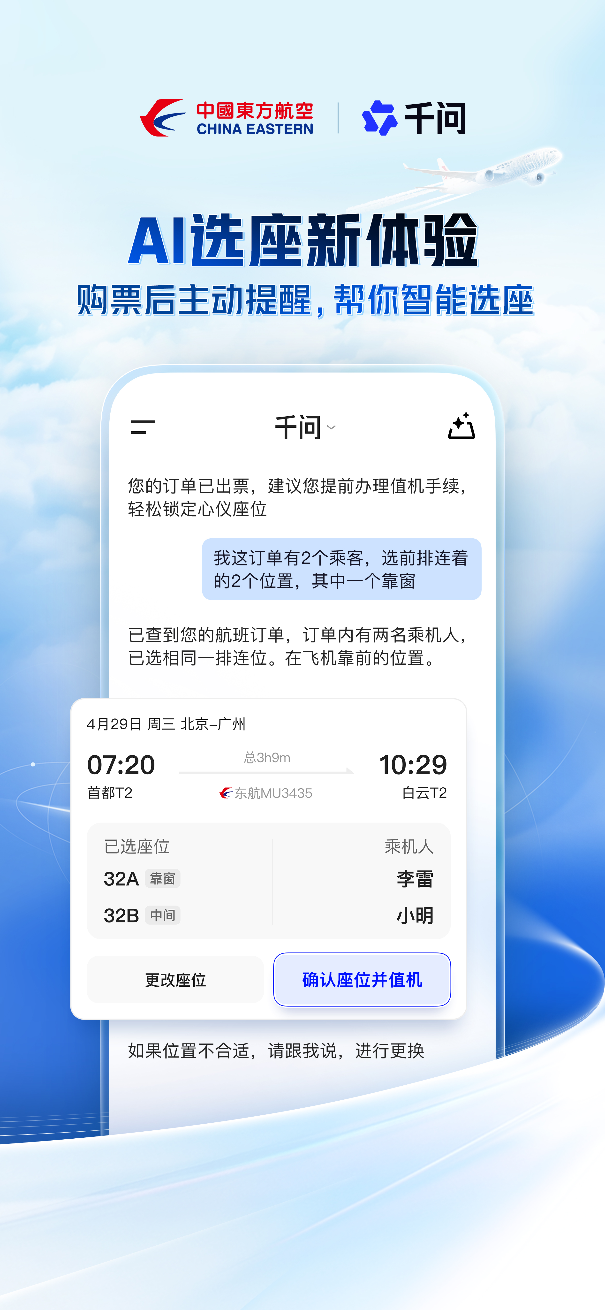 作为双方首次跨界合作成果,中国东航与阿里千问依托AI大模型的支持实现旅客与APP的智能交互,简化传统服务流程。旅客可在千问APP的AI对话界面,通过语音或文字输入起始地、目的地、出行时间及个人偏好(如直飞、价格区间、舱位等级)等信息,AI就能快速精准识别旅客需求,自动查询、比对并推荐最适配的东航航班。从航班查询、快速加入东航会员、在线购票、支付结算,到免费选座、值机、订单查询及行程总览,全流程均可在千问APP内一站式完成,无需经过任何第三方,也无需在多个应用之间切换跳转。目前,购票和选座相关服务已经实现东航国内航线全覆盖。未来,双方还将逐步升级退改功能和会员服务,继续提升航旅服务效率与旅客体验。同时,东航也将携手阿里巴巴为五一期间出行的旅客提供AI专享优惠。