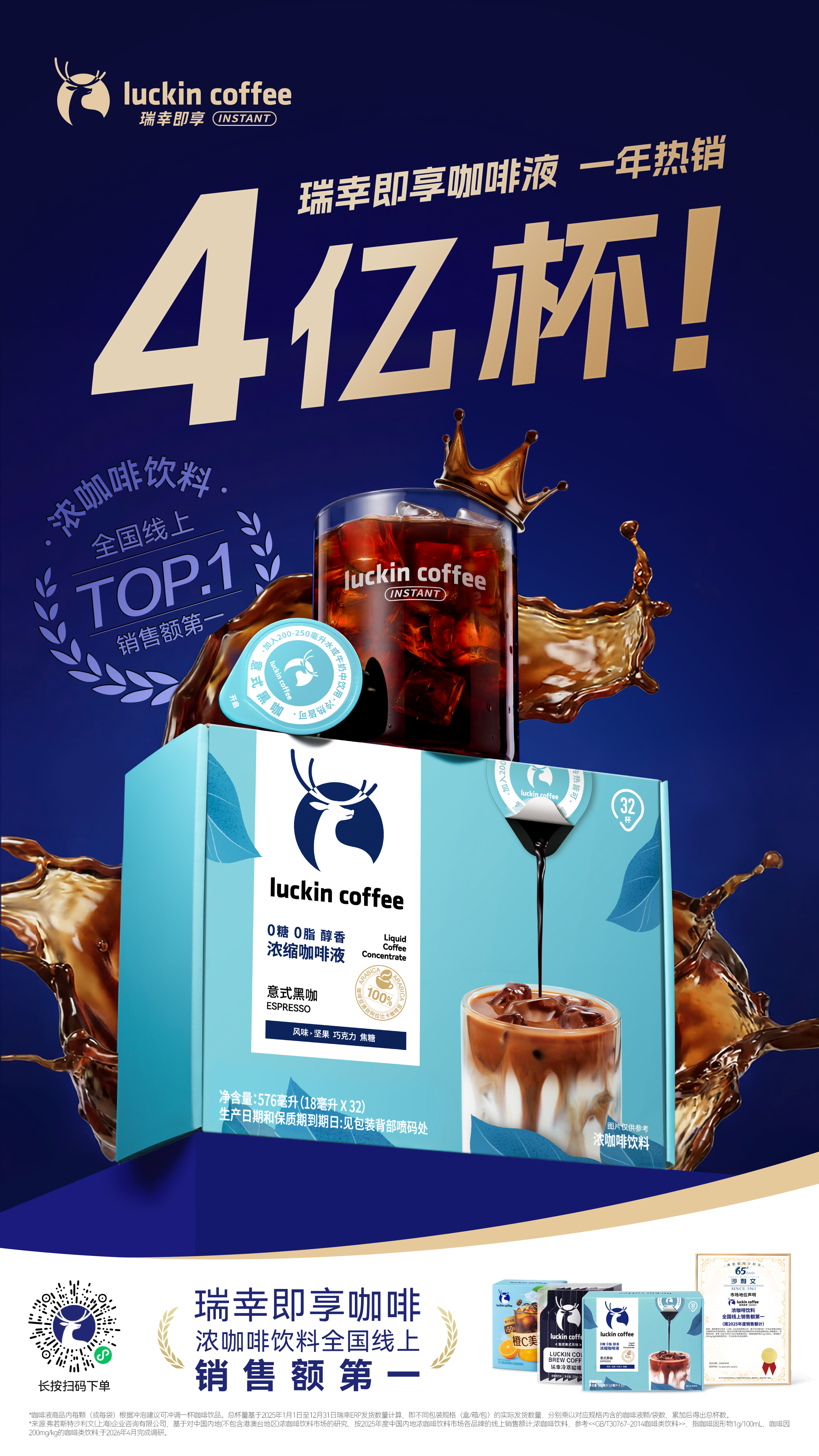 近日,瑞幸即享咖啡获得全球著名增长咨询公司沙利文(Frost & Sullivan)权威认证:按 2025 年销售额计算,瑞幸即享浓咖啡饮料取得全国线上销售额第一。据悉,此次获认证的浓咖啡饮料矩阵包括瑞幸即享经典系列浓缩咖啡液、冷萃咖啡液、果C美式系列咖啡液、醇香浓缩咖啡液、随享黑咖浓缩咖啡液等系列产品。瑞幸即享咖啡数据显示,其咖啡液产品2025年全年销售超过4亿杯。这意味着,在预包装咖啡赛道,瑞幸即享咖啡交出了一份亮眼的成绩单。