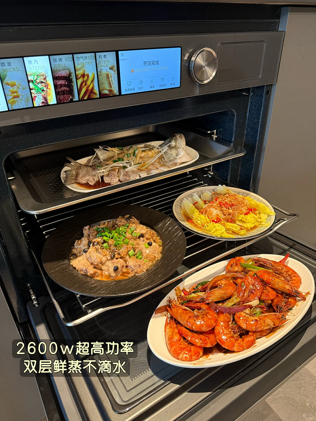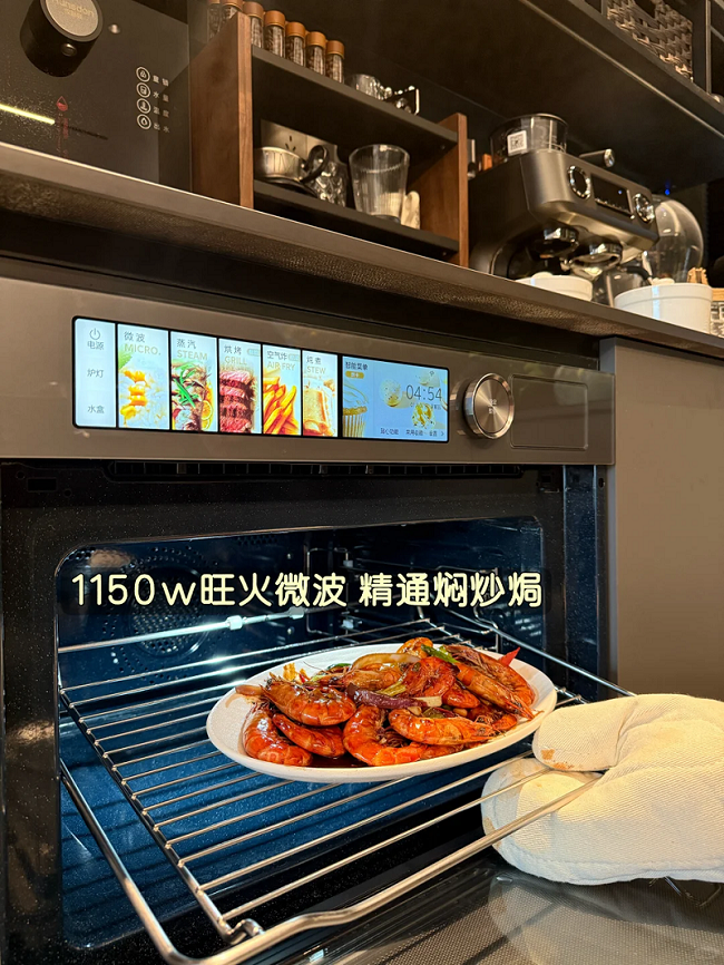 中式爆炒的“锅气”,本质是高温下的美拉德反应与油脂焦化——需要极强的瞬时热力和均匀穿透。可传统微蒸烤一体机的微波功能,功率普遍只有600-900W,而且只能单独工作。热牛奶、翻剩菜勉强够用,想做一道油爆大虾?微波穿透力不足,表面烫了里面还是生的,更别提什么锅气。很多用户吐槽:“微波做菜,就是加热一下,没有灵魂。”这恰恰反映了西式厨电逻辑与中式烹饪需求的错位——标准化、低功率的加热方式,根本驾驭不了中餐对“火候”的瞬时要求。