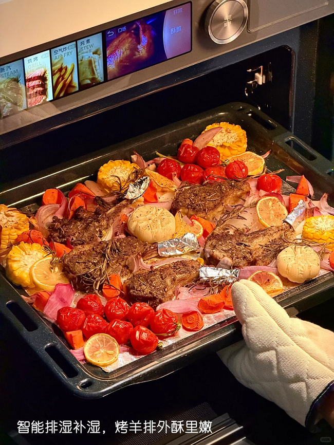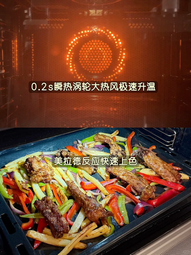 中国人对“烤”的执念,是外层有调料与肉融合的酥脆,里面有肉质本来的嫩,入口还有炭火的焦香。可大多数微蒸烤一体机烤出来的东西,外皮软塌塌,内里干巴巴,更像是“焖”熟的。问题出在两点:一是腔体密闭,食材自身释放的水汽排不出去,高温高湿环境下,美拉德反应被抑制,焦香无从谈起;二是热风系统往往只有单侧或双侧小风扇,腔内温度不均匀,中间快糊了,两边还没上色。结果就是,一块好羊排,最后做成了“焖羊肉”。用这样的机器烤,永远复刻不了街边炭火烧烤的灵魂。