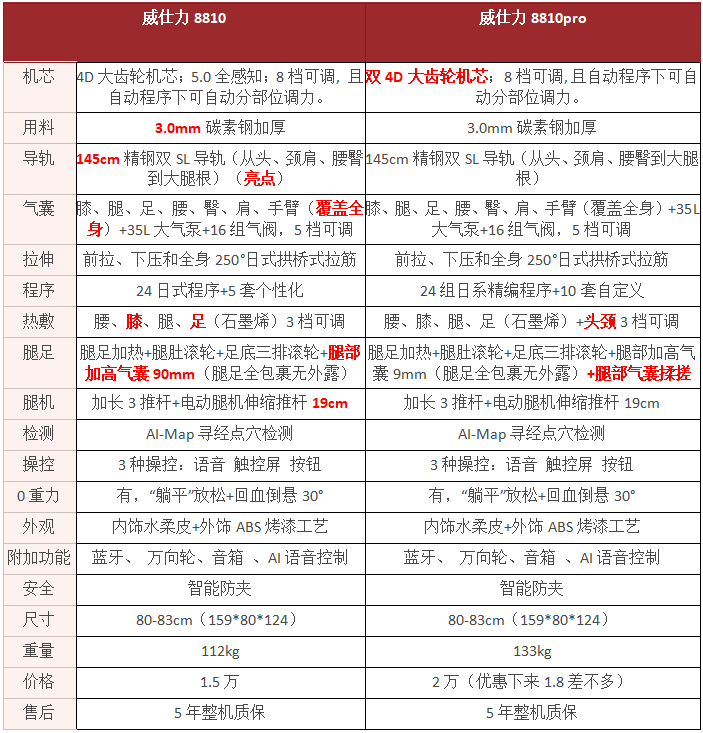 8810pro比8810贵了大概4000块,换来的是双机芯的效率翻倍和更精准的按摩体验,还是很值得的。