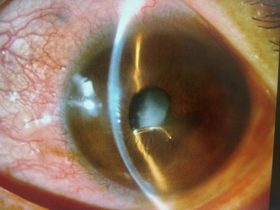 接诊的兰丽霞主任经过详细检查,发现了令人揪心的情况:熊先生的眼球表面竟露出一小截铁丝,进一步检查显示,这根铁丝已完全穿透眼球壁,造成左眼眼球穿通伤、眼内异物,并引发了外伤性白内障。兰主任指出,此类伤势若不及时处理,极易引发眼内感染、视网膜脱离甚至永久性失明。
