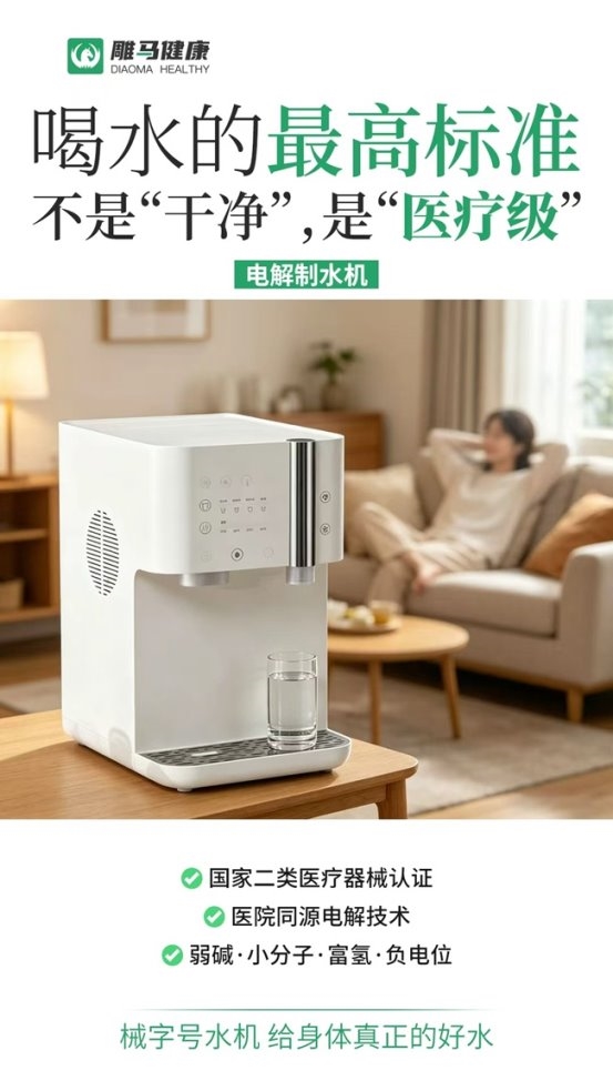 本次合作推出的电解制水机,并非普通家电,而是拥有国家二类医疗器械认证的电解制水机,采用医院同源电解技术,制水品质合规可溯。经设备生成的饮用水,具备弱碱性、小分子团、富氢、负电位等四大核心特性,日常坚持饮用,可辅助改善高血脂症、高尿酸症与慢性便秘问题,为全家人的健康饮水保驾护航。