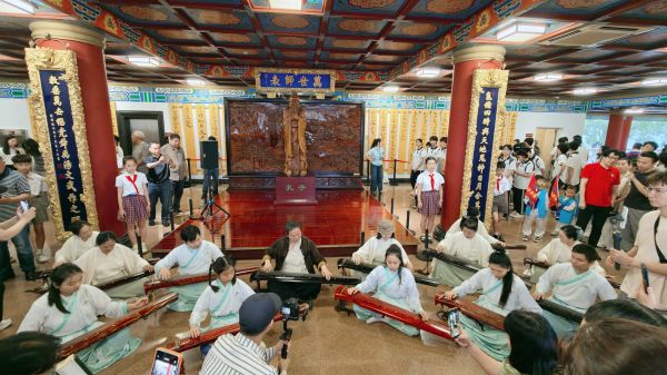 本次书香盛典,高美宝以“琴书合璧”为核心理念,将非遗古琴文化的传承精髓,融入活动策划、现场呈现、文化传播等环节,将传统文化与现代生活更好的融合,让千年古琴的音韵与大众心灵产生共鸣。盛典现场,高美宝倾情演奏经典古琴曲《秋夜读易》,乐曲以孔子“韦编三绝”的千古读书典故为文化底蕴,指尖抚过琴弦,流淌出深远沉厚、恬静中和的琴声,将先圣治学求索的精神娓娓道来。悠扬琴韵与满堂经墨相融共生,意在唤醒每一位在场者的好学之心、品读之乐,让大家在弦音里感悟读书之美,在墨香中传承圣贤之道。