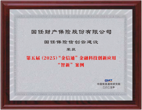 2025年12月17日,由中国信息通信研究院、中保登、金融时报等联合组织评选的第五届(2025)“金信通”金融科技创新应用案例在第八届金融科技产业大会上隆重发布,国任保险信创云建设方案入选第五届(2025)“金信通”金融科技创新应用“智新”案例。
