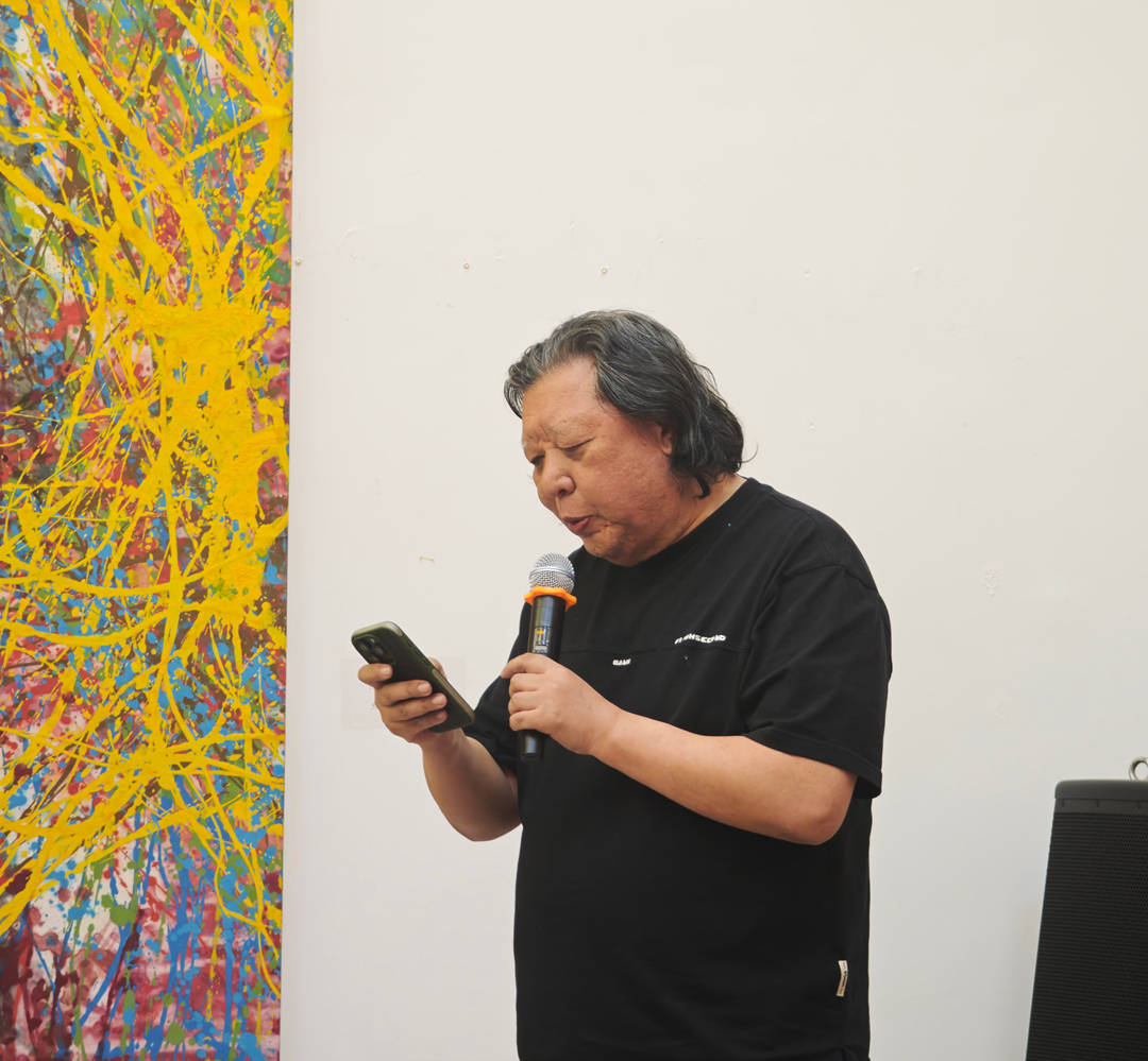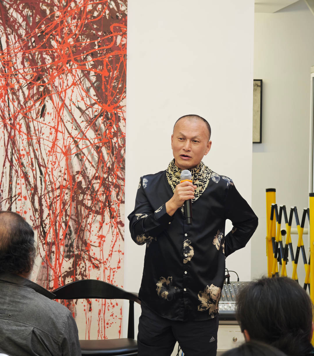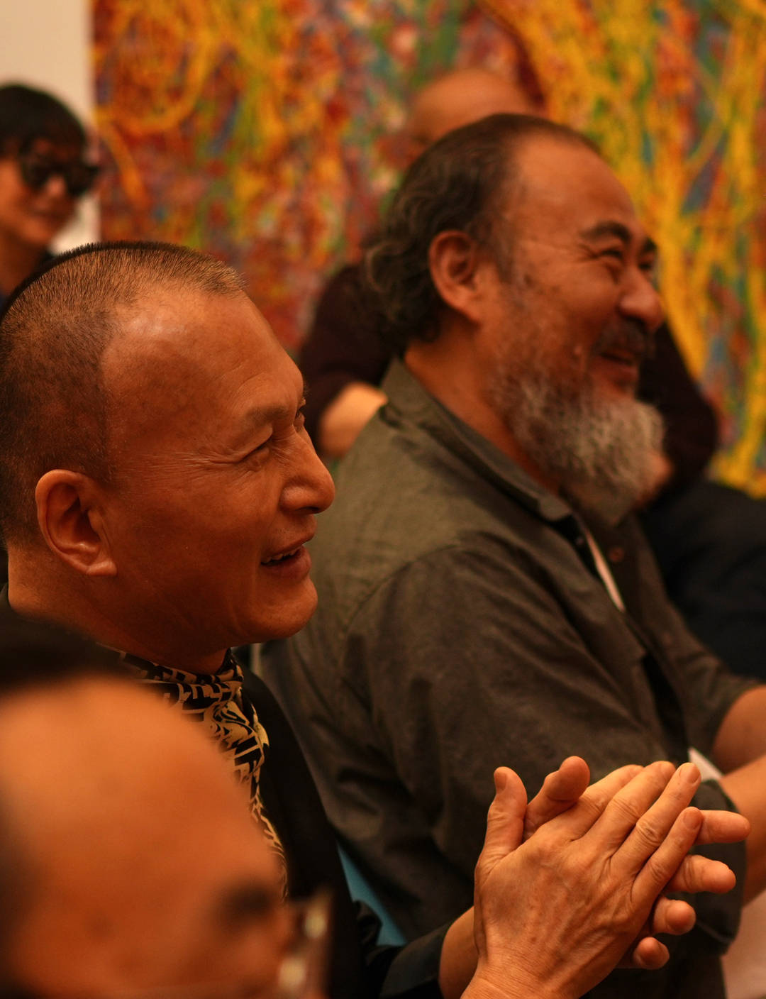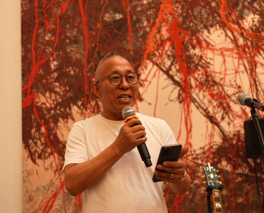 七十二岁的“年轻人”张友宪先生最后登场发言。他饱含深情向近一百位远道而来的同道与朋友表达最诚挚的感谢,并特别致谢此次展览的主办方虞山当代美术馆及北京虞·空间。这位将传统笔墨修炼数十年、却在生命晚景爆发出最强音的艺术家,这个让传统水墨在二十一世纪开出惊红之花的人,外表始终平和敦厚而笑容亲切,与画布上惊动天地的泼天红色恰成迷人对照。