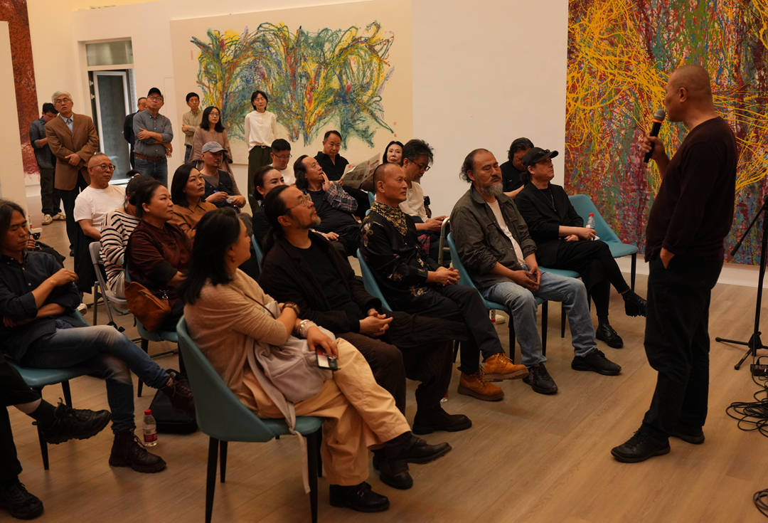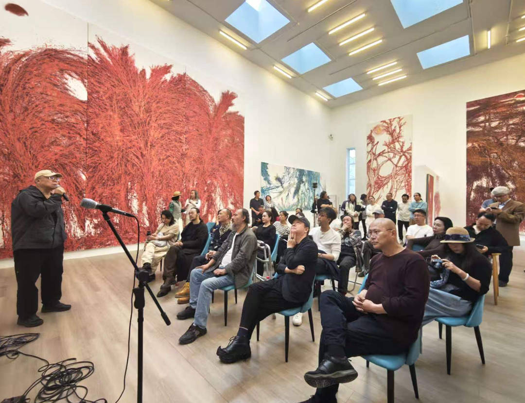 北京大学传记中心主任赵白生先生更犀利地提出,张友宪的绘画应纳入“血脉派”。他认为张友宪红色中涌动的不是编年史式的变革,而是中国人自古以来便不离不弃的生命脉动。他的建议与杨键“张友宪红”的概念殊途同归。赵白生先生并提出未来应做一次深入研讨会,从中国红到友宪红,系统考察这场视觉革命的脉络与意义。整场开幕式理论激情如风暴激荡,画家的红在一众批评者和学者心中迅速升华为文化共鸣。