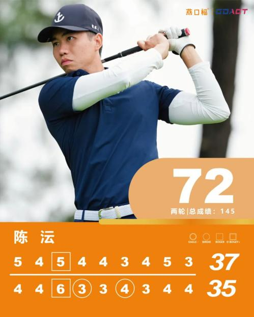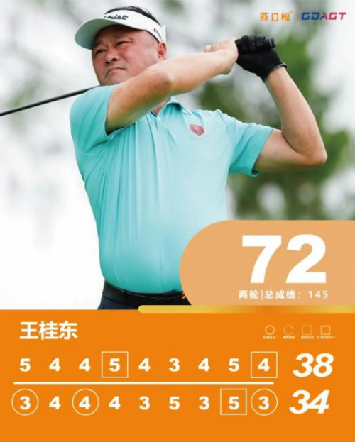 王桂东本轮从2号洞出发,前九洞比陈沄多吞下一个柏忌,转场后他先后在10号、12号洞抓到小鸟球,17号洞吞柏忌后,18号洞又凭借小鸟球反弹,最终同样以72杆完赛,两轮成绩与陈沄成绩持平。