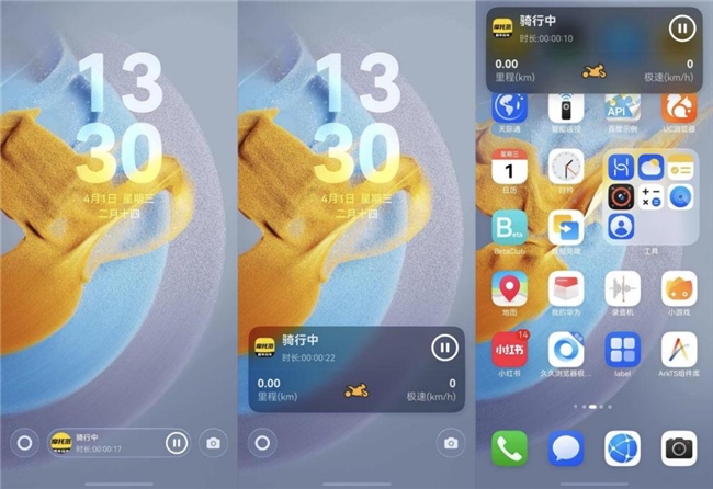 基于鸿蒙系统能力,摩托范将骑行数据直接“钉”在了你的锁屏界面、状态栏或桌面卡片上。无需解锁、无需打开App,眼神轻轻一扫:骑行时长、当前速度、累计里程……关键信息一目了然。
