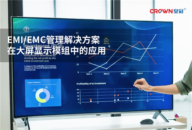 通过多种导电胶带与吸波材料的组合应用,皇冠新材能够为显示模组提供可靠稳定的EMI屏蔽与导电接地解决方案,确保显示设备在复杂应用环境下高效、稳定运行。依托强大的研发实力与专业的项目管理能力,皇冠新材可为显示模组客户提供定制化解决方案和全流程技术支持,助力行业客户实现高性能应用与持续创新。