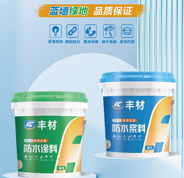 在家装防水工程中,选对材料比一味追求昂贵更为重要。墙面和地面所需的防水材料各不相同:墙面应选用刚性防水,方便后期贴砖;地面则需柔性防水,具备抗拉伸、不开裂的特性。一旦用混或选错,后期很容易出现瓷砖空鼓、防水层开裂等问题。值得一提的是,丰材防水提供了一套明确的用材标准:墙面使用FC-1高效抗渗防水浆料(蓝色),其高强度特性不仅能有效抗渗抗压,还能增强墙面与瓷砖的粘结力,减少空鼓、掉砖等隐患;地面则使用FC-2超柔抗裂防水涂料(靓绿色),柔韧性高,能适应地面的轻微变形,有效防止因基层开裂而引发的渗漏。