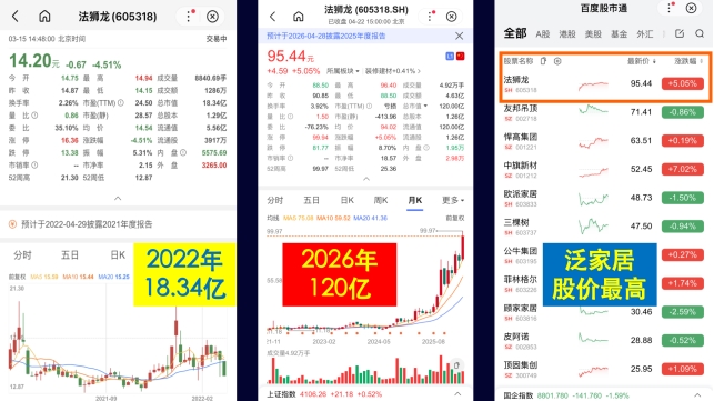 法狮龙IPO后市值连续3年徘徊在20亿上下。王老师以品牌和文化顾问身份介入后,对法狮龙品牌和文化进行全面梳理优化,输出了一套“文化扎根、营销穿衣、品牌戴帽”的市值管理模型,在董监高3年持股解禁后,法狮龙市值由18亿飙升到120亿,成为吊顶行业市盈率最高的“牛股”,也是泛家居行业股价最高的品牌。