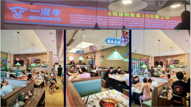 他认为,消费者进店吃的不仅是味道、环境和服务,更是氛围和情绪。于是,他提炼出“一滋牛,有滋有味才叫牛”的价值主张;演绎了“北纬31度,好牛迈出百万步”“从牧场到餐桌,108道工序,让生活有滋有味”的情绪价值;从餐厅氛围“牛魔王区”“悟空区”“哪吒区”焕新到“我是一只牛”的背景音乐,从导餐话术“感谢光临!欢迎再来!”的细微变化到服务步骤“一迎二坐三取盘,四洗五料六锅端,七汤八菜九拼团,核销优惠开心见。”从“大雅之汤”“济济一汤”锅底到“蔬香门第”“菌子之交”拼盘,用趣味逗乐的展示,博得客户的会心一笑、随手一拍,这些都成为互动传播的iP情绪。
