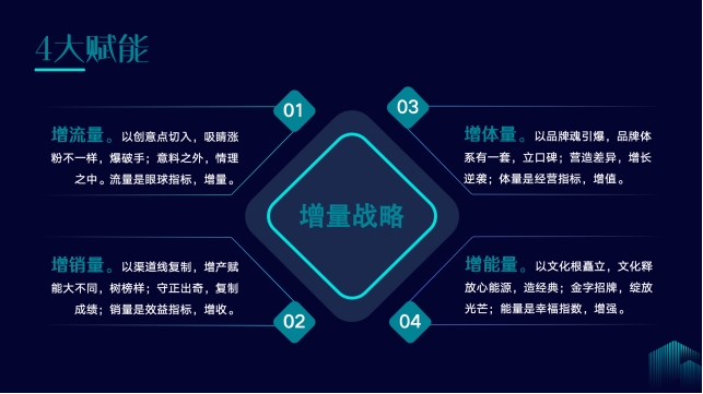 纵观这些成功案例,我们发现“一加一”始终在做一件事:在理性的商业世界里,唤醒感性的力量,进而实现增量。在心定位“根魂体形”体系中,不仅有独树一帜的顶层设计和差异化的定位及其战略配衬,更有关乎企业销售和招商转化的营销策略体系,渠道与产品交织赋能中万变不离其宗的盈利模式,辅以各种创意和金点子,让策划拉动“点-线-面”的强壮。