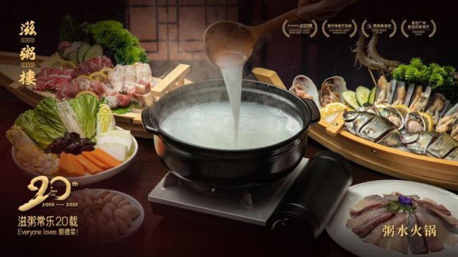 滋粥楼粥水锅经数年悉心研发,米粒与水恰到好处的比例使得淀粉在高温下发生奇妙的反应,粥水中的营养物质与食材融合在一起,水米融洽,柔腻如一。稠淡适中的粥水轻轻裹住食材, 形成薄薄的保护层, 既赋予了食材更加鲜嫩的口感,也将食物的营养牢牢地锁在其中, 粥水锅涮尽天下可涮之物,有米之香却无米之粒。每一滴粥水,都蕴藏着顺德人善于发掘生活的大智慧