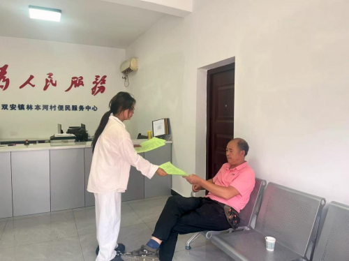 在办事等候区,志愿者化身政策宣传“宣传员”,向前来办事的村民发放惠民政策宣传资料。她用通俗易懂的语言,为村民讲解医保办理、民生补贴等政策内容,耐心解答村民的疑问,将政策红利精准传递到群众身边。接过宣传资料的村民认真阅读、频频点头,这一幕,正是基层服务中“心贴心”沟通的生动缩影。