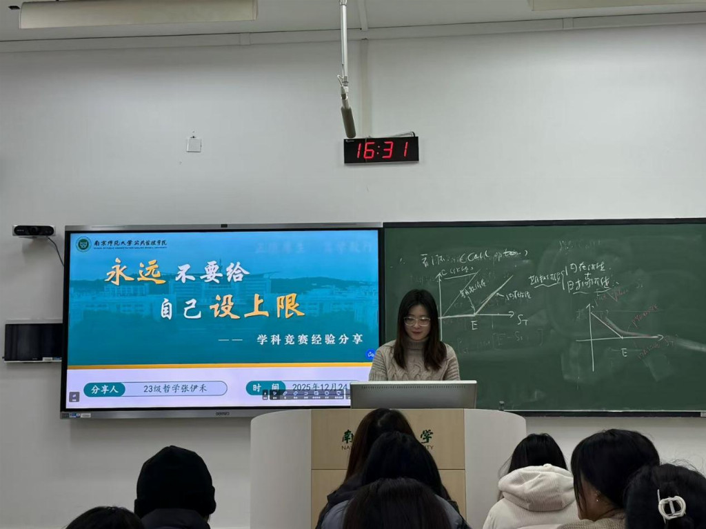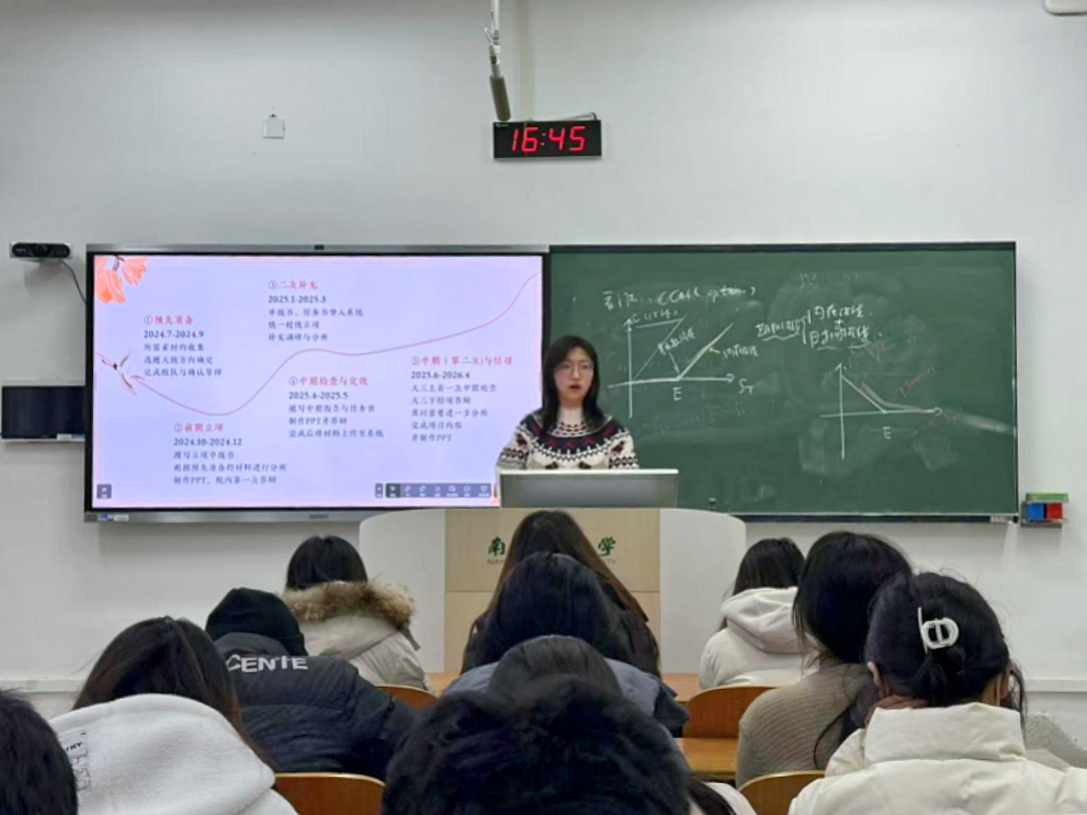 为帮助我院学子深入了解大学生创新创业训练项目的申报流程与实践方法,提升创新思维与科研能力,激发同学们参与大创项目的积极性,2025年12月24日下午4:30,公共管理学院大创经验分享会在学海楼516成功举行。本次分享会以“创智齐汇聚,嘉言薪火传”为主题,邀请哲学专业2023级张伊禾、庆朴凡两位同学担任主讲嘉宾,分享他们在大创项目中的实战经验与心得体会。活动吸引了共80余名学生积极参与。本次讲座由公共管理学院本科生学生会主办,由学生发展中心副部长程冠华主持。