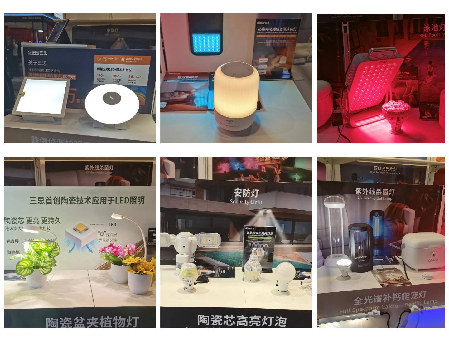 本次展会,上海三思重点呈现三大产品矩阵。首先是面向北美及全球市场的高性能基础照明产品,包括高光通量球泡灯、植物补光灯及安防灯等,均基于其独特的陶瓷散热技术打造,在亮度与使用寿命方面实现显著提升。其次是聚焦“银发经济”的智慧康养照明产品,如具备跌倒侦测功能的护眼吸顶灯、可实现呼吸与心率监测的床头灯,以及红光光疗灯与紫外杀菌灯等。