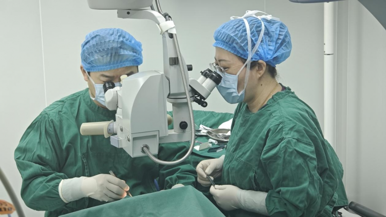 在完善各项术前检查、做好充分术前准备后,杨秋艳主任为小张制定了个性化手术方案,顺利为其实施了左眼外直肌后徙6mm、左眼内直肌缩短5mm的斜视矫正手术,整个手术过程平稳顺利,达到了预期效果。