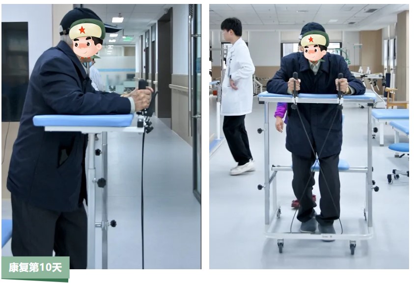 治疗过程中,康复师不仅关注其身体功能的恢复,更注重心理信心的重建。在专业、温暖的陪伴与鼓励下,冉爷爷从最初在站立床上坚持20分钟双腿颤抖,到后来能够借助助行器独立行走,步伐日益稳健。这位与轮椅相伴两年的老兵,在重庆仁品医院康复科的帮助下,再次“站”了起来。