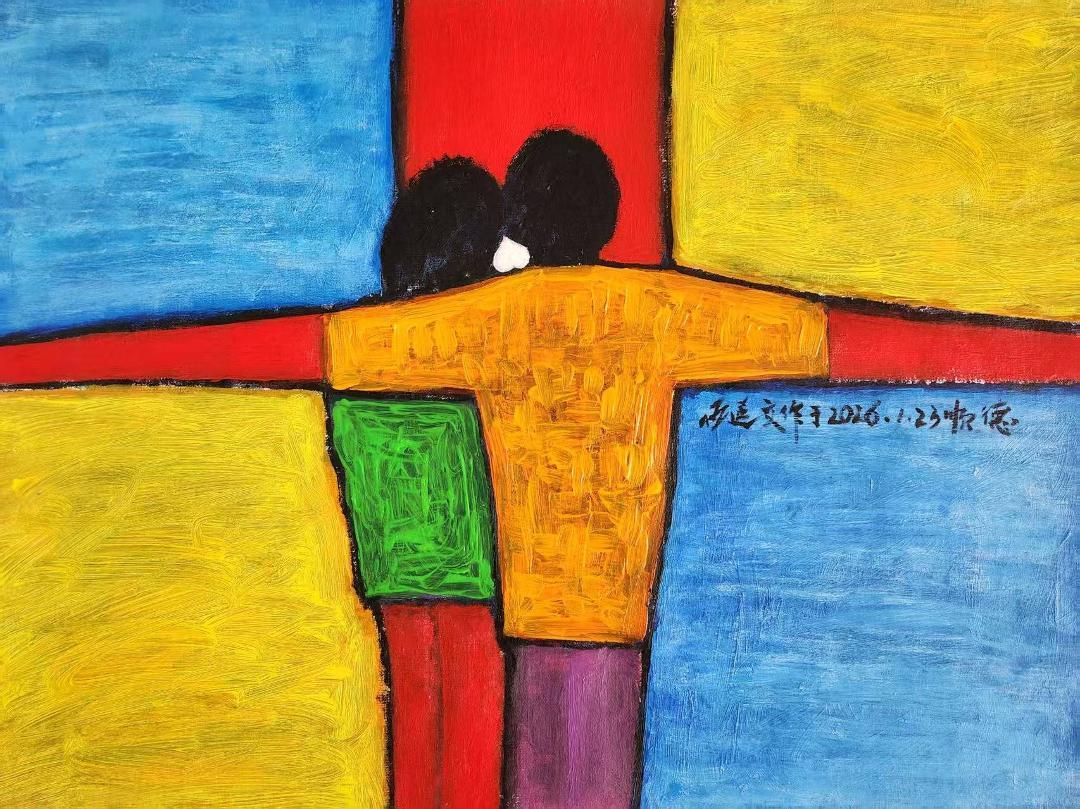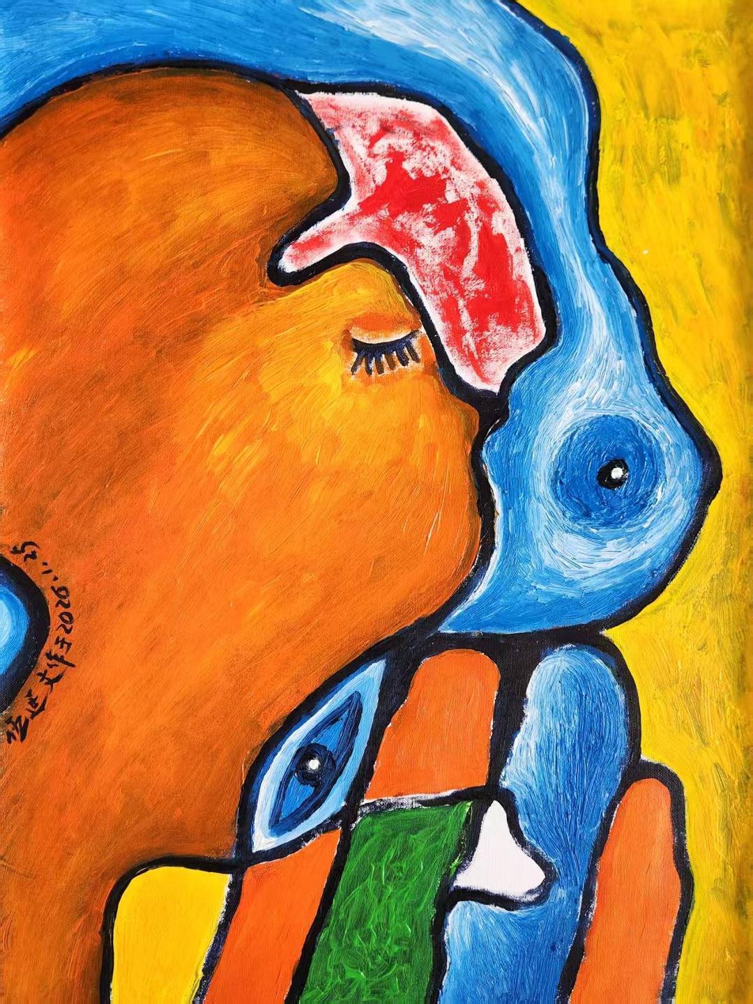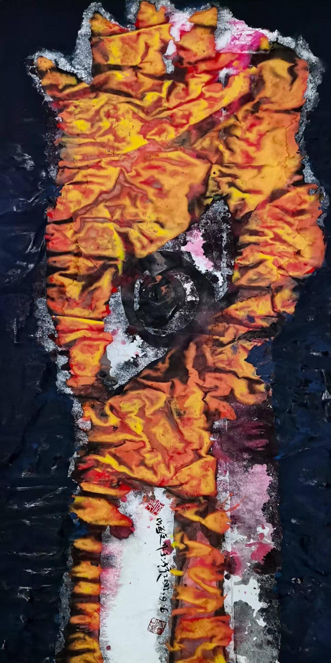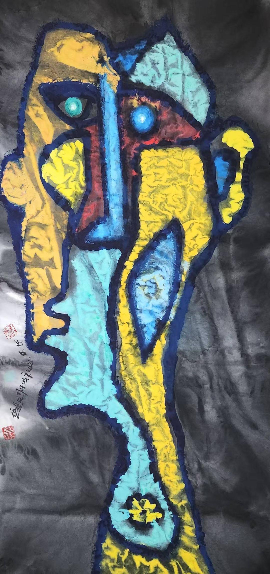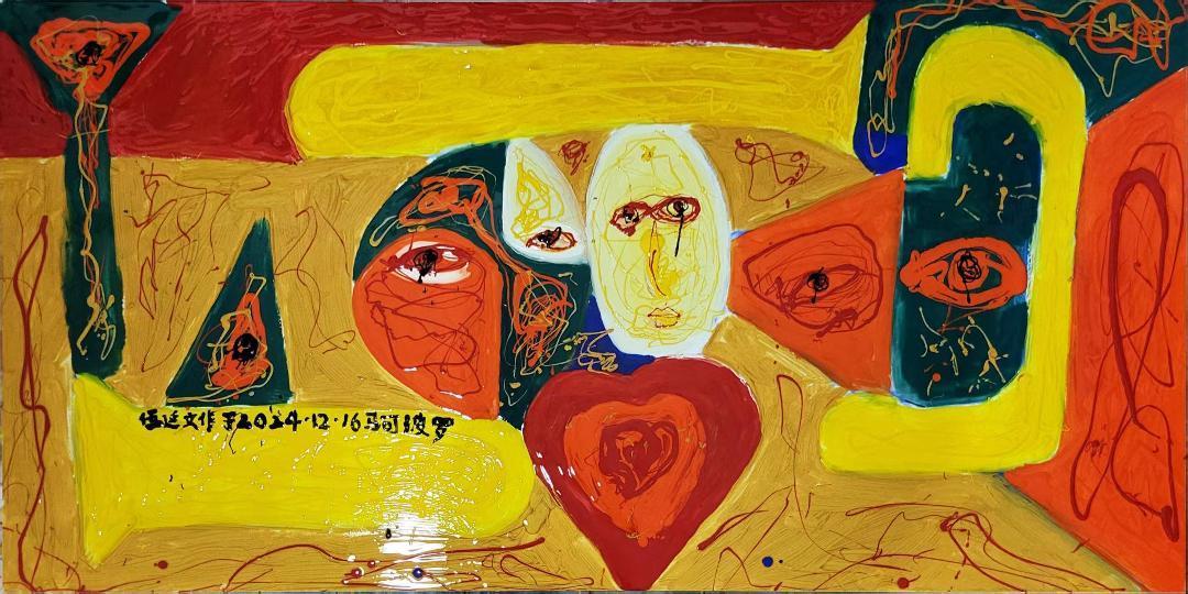 伍延文的艺术,源于灵魂的自然宣泄,而非刻意雕琢的匠气。他坦言,多数作品是心绪涌动、情感迸发的即兴之作,是人生阅历与意念碰撞的艺术硕果。虚实交织的构图、自由奔放的笔触、怪诞灵动的意境,看似缥缈,实则扎根现实、饱含哲思。其独创的意念野兽派,绝非无源之水:他深挖湘西图腾、镂刻拓印、传统民俗等东方文化根脉,以“去传统而再传统”的理念,将古典文化符码与当代艺术语言融合,让古老文脉在新时代焕发新生,走出一条传统赋能、意念创新的独创之路。