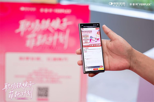 同日,菲普利OTC以主题为“职场铁娘子·菲跃计划”的快闪活动在京东总部大堂惊艳亮相,旗下菲普利蛋白琥珀酸铁口服溶液以OTC(非处方药)新身份正式登场,迅速成为全场焦点。