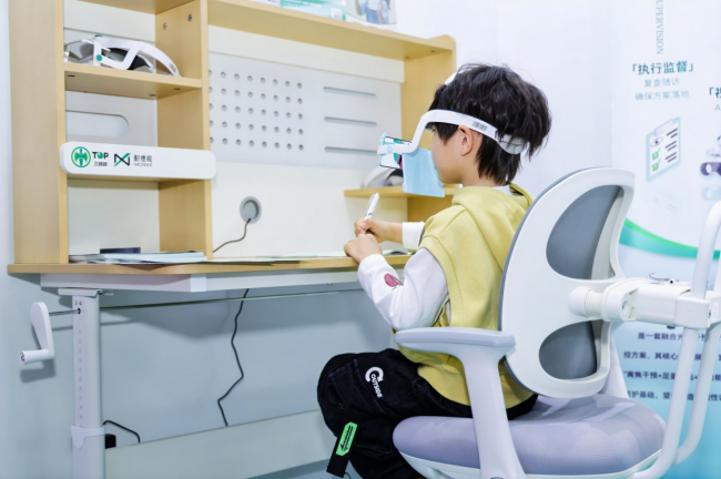 更难得的是,它把视觉训练融入日常。双视角光路设计,让孩子平视看黑板/视标、透过镜片看书本,自然完成远近交替,不打断学习节奏就能做调节与聚散训练,把诊室里的“三板斧”方案,浓缩进一副可随身戴的“眼镜”里。