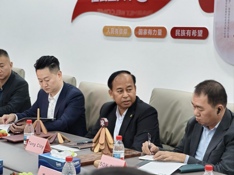 4月24日,柬埔寨工业部副部长Tung Ciny率考察团,在广东省民营企业海外贸易促进会(以下简称“海促会”)代表的陪同下,来访木头云总部,木头云董事长林智添携各业务板块负责人热情接待。