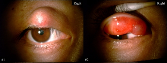 经裂隙灯检查,该院眼肿瘤专家朱加贵主任发现,刘先生右眼上睑睑板腺开口处有一边界清晰的圆形隆起,无压痛,与皮肤无粘连,结合病程特点,确诊为“右眼睑板腺囊肿”。