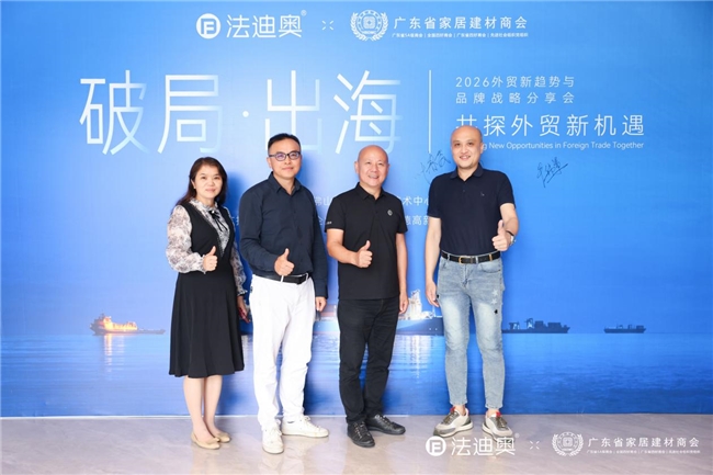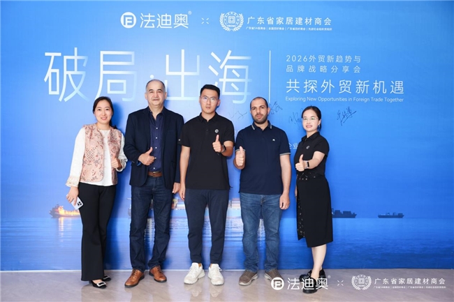4月28日,由法迪奥与广东省家居建材商会联合主办,陈村镇企业服务中心、顺德高新技术企业协会鼎立支持的“破局出海·共探外贸新机遇——2026外贸新趋势与品牌战略分享会”在法迪奥新总部圆满举办。