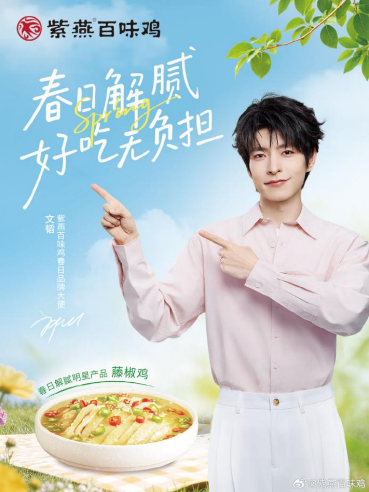 紫燕食品与文韬的携手,并非简单的流量联动,而是基于形象、价值的深度契合。文韬作为青海省理科高考状元、北大学霸,兼具智慧与清新气质,沉稳、干净、从容的个人形象,与紫燕藤椒鸡“清爽解腻、嫩滑鲜麻”的产品特色高度契合,更与品牌想要传递的轻盈、健康的饮食理念同频共振。此外,文韬的粉丝画像与紫燕食品近年来重点布局的白领、大学生群体完美契合,有效助力了品牌破圈。