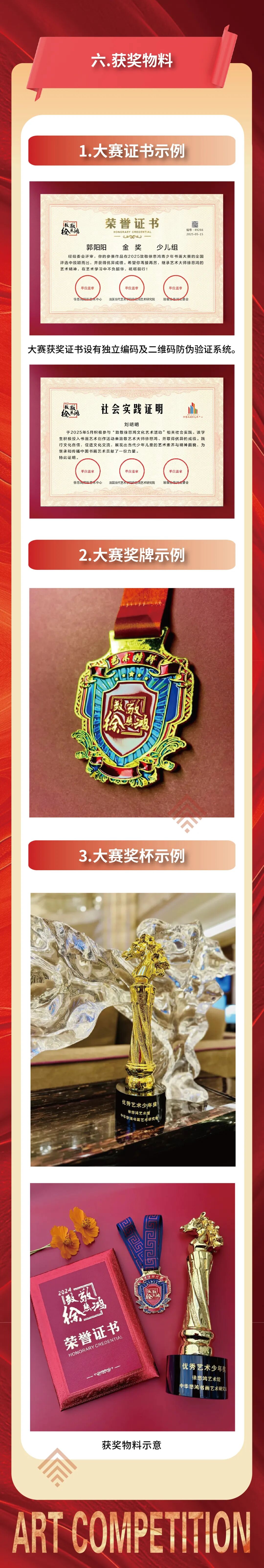 • 荣誉激励:颁发官方认证证书与奖项,证书含金量十分珍贵,凭借活动获奖证书,可在部分省份地区计入青少年艺术特长生测评考核,同时在中小学生升学、评优评先、择校升学等关键环节均能发挥有效助力,是中小学生在个人履历中艺术板块的靓丽一笔,为青少年艺术成长留下权威、高含金量的认可。